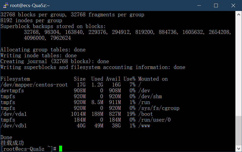掛載完成后,必須重啟一次服務(wù)器,重啟后服務(wù)器能正常打開,說明掛載沒有問題。