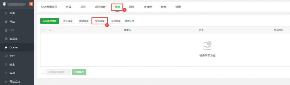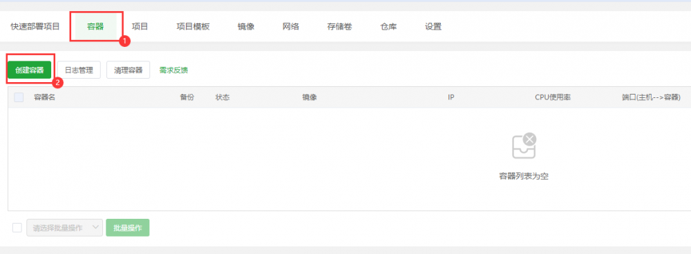等待拉取完鏡像后,再點擊頂部的容器-創建容器